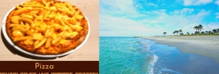Cocktail Pommes Pizza NEU ø 24 cm ist belegt mit mit Cocktail Sauce,Pommes Frites.